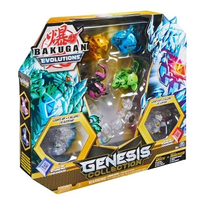 - The Bakugan Genesis Collection has everything you need to brawl! Featuring 2 Light-Up Bakugan with stands, 4 exclusive Bakugan, 2 exclusive Nanogan, 6 character cards and more!