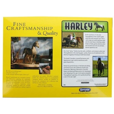 At the racetrack, it’s the slick Thoroughbreds in their colorful saddle cloths that catch everyone’s eye. That is, until a large and colorful lead pony steps onto the track! Daisy’s Chief Dane, better known as Harley, garners attention whenever he works due to his size and black blanket appaloosa coat. Breyer’s Traditional Series model horses offer an unmatched level of realism and attention to detail appreciated by children and adults alike. Makes a great gift for any horse lover or hobbyist!