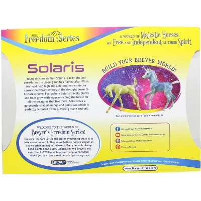 Young unicorn stallion Solaris is as bright and cheerful as the blazing sun he’s named after! With his head held high and a determined stride, he carries the vibrant energy of the daylight down to his forest home. Everywhere Solaris travels, plants and trees grow with vigor, enriching the forest for all the creatures that live there. Solaris has a gorgeously-shaded orange and gold coat, which is perfectly accented by his glittering mane and tail.
