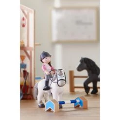 The talented rider Sanya and her horse Saphira have a lot of adventures together. Several times a week, they train for show jumping competitions, and they have mastered the high fences with ease. But they also enjoy riding out together. The flexible Sanya doll and her horse are the ideal gift for all junior riding fans. Contents: 1 female rider figure (Sanya), 1 horse figure (Saphira). Dimensions: rider 4″, horse.5″