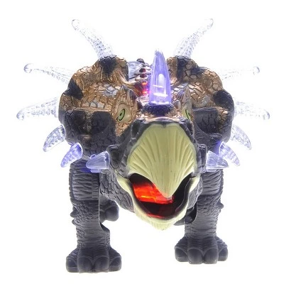 Relive the prehistoric days with the scary looking triceratops! The triceratops can move forward and backward in a lifelike manner. The dinosaur can even open and close its mouth. The glowing head and lifelike sounds created by this triceratops will instill fear in everyone around you! Use it to establish your territory! 1 x Dinosaur FigureProduct names are trademark of listed manufacturer or other owners, and are not trademarks of eForCity Corp. The manufacturer does not necessarily endorse use of these products.