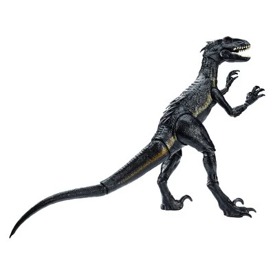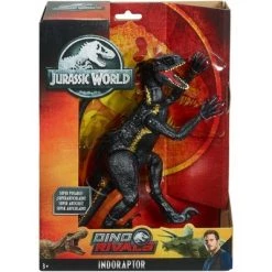 Get ready for thrilling action and adventure with Jurassic World! There’s a mysterious villain stalking the area and he’s after anything or anyone that moves! Straight from the film, Indoraptor wreaks havoc and fear with his mere presence. His ominous features include slick black scales, long arms with dagger-like claws and extra articulation that he will use to catch anyone that crosses him. Act out ferocious battle scenes with Indoraptor and relive all the exciting adventure of the movie! Colors and decorations may vary.
