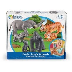 These giant-sized Jumbo Jungle Animal figures are perfect for dramatic role play! Matched up to mommas and babies, your little ones can play prehistoric family for hours. Made of tough, crush-resistant material that will stand up to years and years of use, the giant figures can also be easily wiped clean. This deluxe set includes: momma and baby elephant, momma and baby gorilla, and momma and baby tiger.