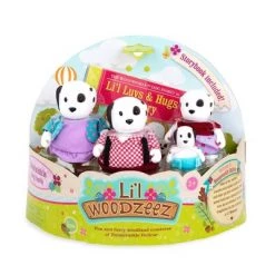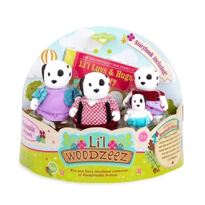 Say hello to the Woofwinkle Dog Family! These animal characters live in Honeysuckle Hollow, a friendly neighborhood where all the Li’l Woodzeez work together and have fun. This toy set comes with four dog characters: Mom Molly, Dad Toby, and kids Ruby and Patch. Also included is a family storybook, “Li’l Luvs & Hugs Nursery”, so you can learn more about the adventures of the Woofwinkle Dogs! These tiny toys are soft to touch, and you can move their heads, arms, and legs for hours of pretend play. Each miniature figurine comes with a colorful outfit, which you can mix and match with other Li’l Woodzeez toys. Use your imagination to explore the wholesome world of Honeysuckle Hollow!
