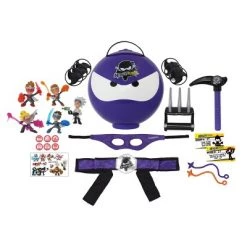 Now kids can be ninjas too with As Seen on YouTube, Ninja Kidz TV action figures and wearable battle gear! Series 3 includes 25+ surprises, including 5 Ninja Kidz Action Figures with articulation, 1 ninja mask and belt, 2 pieces ninja battle gear, 6 ninja throwing stars, 2 sticky stars with 6 sticky star targets, 2 mission cards, 1 sticker sheet and 1 collector card. This action-packed ninja container doubles as easy-to-carry storage, and includes a detachable shield for ultimate ninja play. There are 2 unique GIANT Mystery Ninja Balls to collect. All contents are blind.
