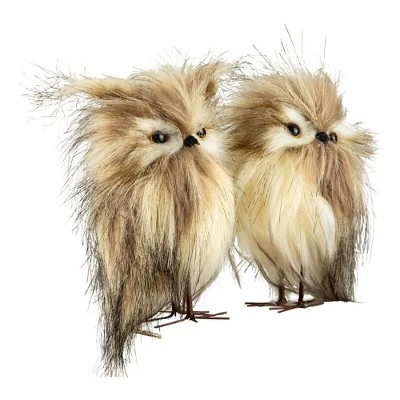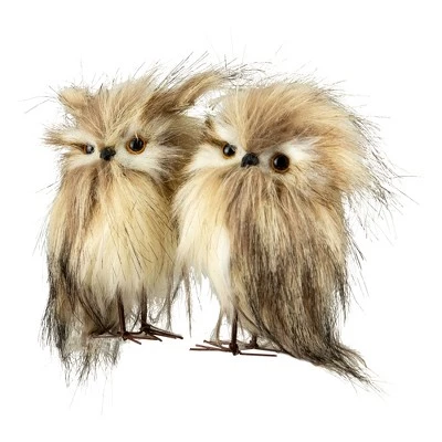 This set of woodsy owls adds a touch of the outdoors to any decor. Realistic features and soft faux fur make them a must have in any country rustic setting. Perfect on mantles, tables or as part of a centerpiece. Features:Set of 2 plush owl holiday decorationsLong plush faux furRecommended for indoor use only Dimensions: 6″H x 2.5″W x 2.5″ Material(s): fabric/foam