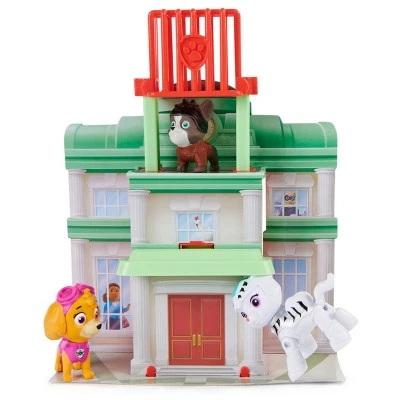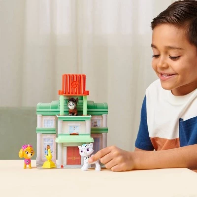 Introducing Cat Pack, the newest feline friends of the PAW Patrol pups! This exclusive mini-playset includes a collectible Rory action figure, along with Skye and Hubcap figures, a statue of Chickaletta and the Adventure Bay Town Hall! Hubcap is trying to steal the Chickaletta statue, on the roof of Adventure Bay’s town hall! Team up with the lovable Rory Cat, and her pup pal Skye, as they race to the rescue! Push Rory down into super-pounce mode, then tap her tail gently, to activate her super-jump rescue move, and capture Hubcap using the cage on the roof, just like they do in the show! With PAW Patrol toys, a kid can explore his or her imagination and develop their motor skills through pretend play, with their favorite PAW Patrol pups. For even more fun and excitement, collect all the Cat Pack and PAW Patrol kids toys and action figures, along with their team vehicles and playsets (each sold separately), so you can relive all your favorite moments from the show, like the PAW Patrol Movie, or create your own new adventures over and over again!