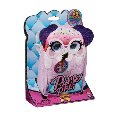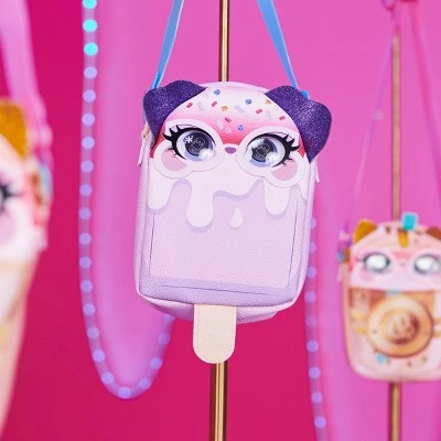 - Pupsicleās unique mashup look, pebbled faux leather, glitter ears, pop art eyes, jelly strap and vertical shape make this Purse Pets kawaii purse the ultimate pet and fashion accessory! Does not blink.