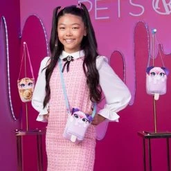 - This trendy crossbody purse responds to touch and has cheeks that light up! On-the-go, her cheeks change color and sheāll interact with you. Pet her head for sweet snuggle sounds!