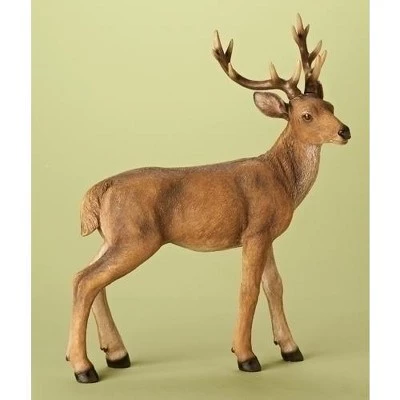 Rustic deer figure is intricately designed and detailed with life-like features Dimensions: 23.75″H x 18.75″W x 8.5″D Material(s): porcelain/resin/stone mix